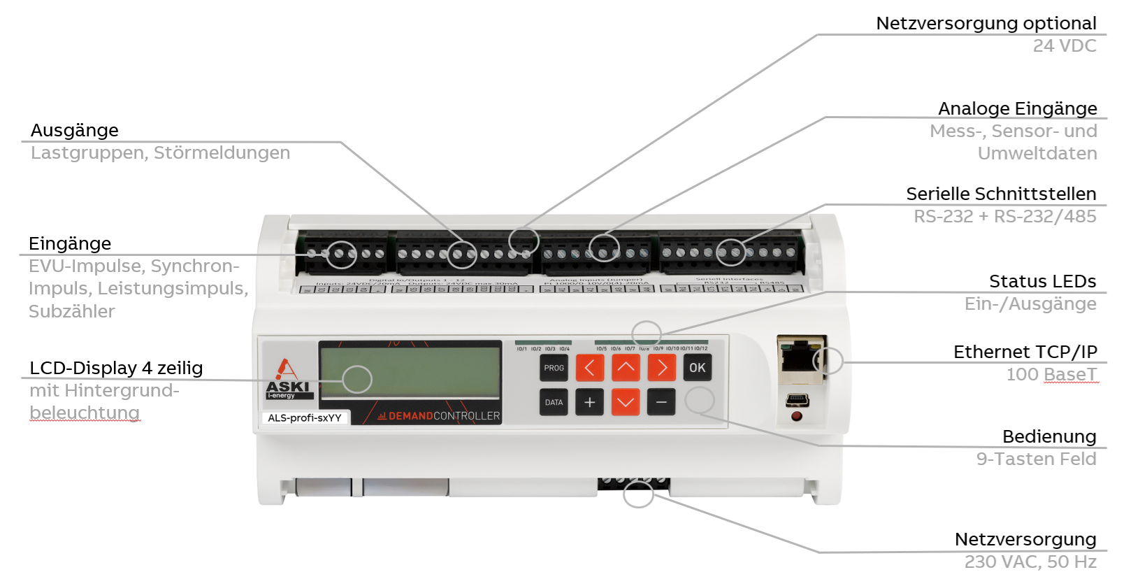 Der ALS-profi Controller überzeugt mit vollem Funktionsumfang und bekommt teure Lastspitzen nachhaltig in den Griff. Die Parametrierung (Max/Min, Ein/Aus, Schalt- oder Taktzeiten) kann für jeden Verbraucher individuell fix oder variabel vorgegeben werden, um das Lastmanagement so individuell an Ihre Anforderungen anzupassen.